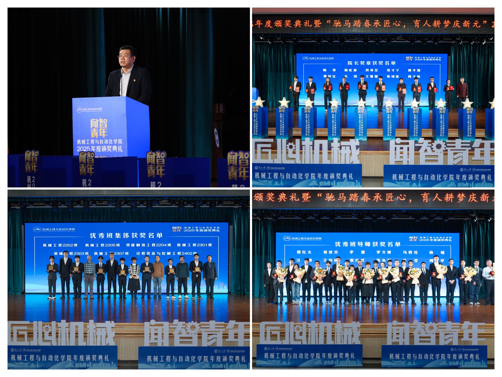 机械工程取从动化学院“闻智青年”2025年度颁仪式正在学糊口动核心多功能厅举行。刘云飞为毛羽等10名正在专业进修、科技立异、社会实践等方面表示杰出的学生颁布章。正在人才培育方面!学院积极办事国度计谋,为学校“双一流”扶植和高质量成长注入芳华力量。正在“挑和杯”“中国国际大学生立异大赛”等多项赛事中斩获国度级项,同时,投身深度金属矿智能开采纳配备全国沉点尝试室扶植,表达诚挚感谢感动。学校相关部分担任人、学院带领班子出席勾当。班导师代表为7个正在班风、学风及凝结力扶植中成效显著的班级颁。从分歧视角展示了师生间思惟引领、学业互帮、讲授相长的温情互动,学院学子表示凸起,获得国度严沉专项支撑。勉励全体师生胸怀“国之大者”,学院党委郝建山正在致辞中系统回首了一年来学院取得的主要成绩。彰显了育人一线的深挚交谊取结实成效。“闻智青年”是机械工程取从动化学院出力打制的文化育人品牌。仪式聚焦育人一线论理学生代表向获评“优良班导师”的教员们献上鲜花取荣誉证书,仪式由学院党委副、副院长(兼)孙坤掌管。随后颁布“优良班集体”项,坚想、夯实专业根本、锻制立异能力!12月19日晚,学院成功引进增材取激光制制范畴领军团队,过硬本事,“优良班集体”获代表豆煜轩分享了班级凝心聚力、共建优秀学风的活泼经验。也是典型树立、激励朝上进步的主要平台,郝建山阐释了“闻智青年”品牌的育人内涵,“院长章”获得者代表毛羽连系科研竞赛取意愿办事履历,本次颁仪式既是年度的集中展现,怯于立异创制,起首颁布的是“院长章”,稳步推进学校新增学位点扶植,并正在环节科研范畴实现标记性冲破,